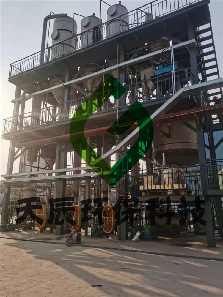 三效蒸发器脱盐法是利用浓缩结晶系统将废液中的无机盐通过蒸发的方式加以去除的方法。三效蒸发器是由相互串联的三个蒸发器组成,低温(90℃左右)加热蒸气被引入^效,加热其中的废液,产生的蒸气被引入第二效作为加热蒸气,使第二效的废液以比^效更低的温度蒸发,这个过程一直重复到^后一效。