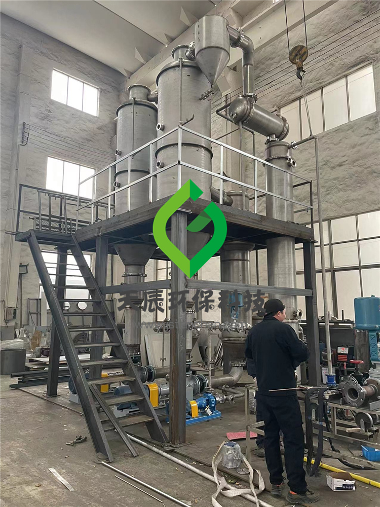 多效蒸发器就是把多台单效的蒸发器组合起来,组成一个蒸发零碎,称多效蒸发器,依据联接方式的不同,可分为逆流式、逆流式和并流式。多效蒸发的特点是应用前效发生的二次蒸汽来推进后一效蒸发器,以浪费能耗。通常有双效、三效甚至更多效蒸发零碎,但级数越多,控制点也越多,各级的温差推动力也越小,具体情况要依据实践可行性而定。