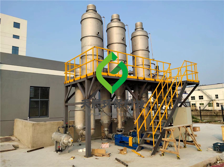 三效蒸发器脱盐法是利用浓缩结晶系统将废液中的无机盐通过蒸发的方式加以脱去的方法。三效蒸发器是由相互串联的三个蒸发器组成,低 温(90℃左右)加热蒸气被引入一效,加热其中的废液,产生的蒸气被引入二效作为加热蒸气,使二效的废液以比一效低的温度蒸发,这个过程一直重复到三效。一效凝水返回热源处,其它各效凝水汇 集后作为淡水输出,一份的蒸气投入,可以蒸发出水出来。同时,高盐废水经过由一效到三效的 依次浓缩,在三效达到过饱和而结晶析出,由此实现盐分与废水的固液分离。